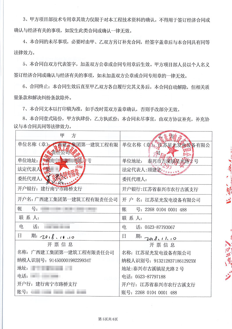 江苏星光动力集团 >> 新闻动态 >> 恭喜我公司和广西建工集团第七次合作,再次签订200kw/500kw柴油发电机组两台