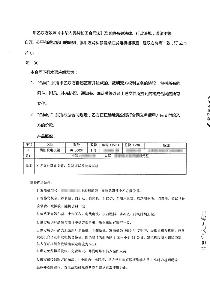 我公司成功签订南京健友生化制药股份有限公司300KW静音箱式柴油发电机组一台