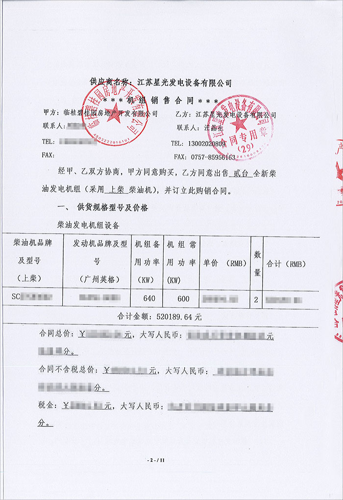江苏星光动力集团 >> 新闻动态 >> 我公司和碧桂园集团再次合作,成功签订桂林碧桂园二期项目两台600KW上柴发电机组