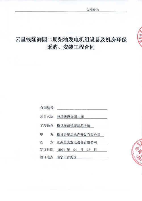 江苏星光动力集团 >> 新闻动态 >> 恭喜我司与云星钱隆御园再次合作,签订一台800KW柴油发电机组