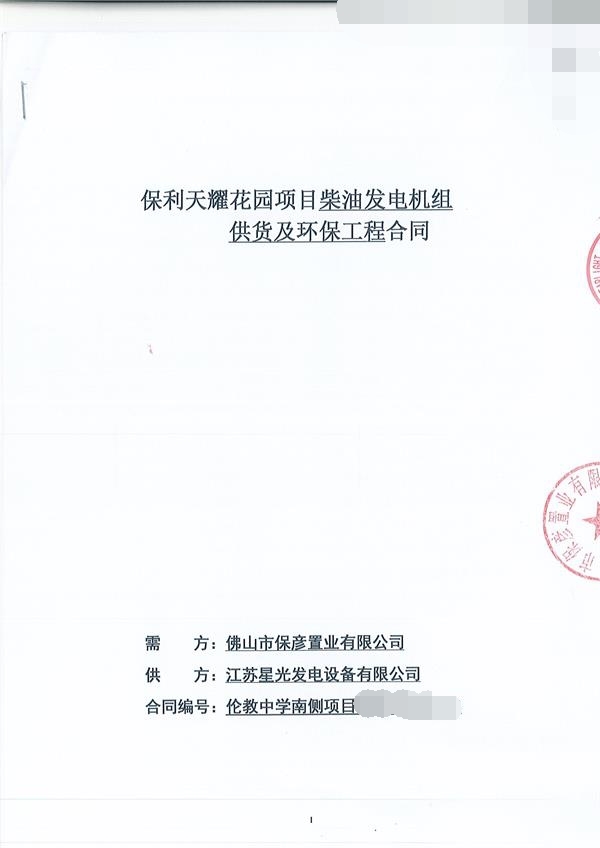 祝贺星光动力签订保利天耀花园项目上柴发电机组400KW