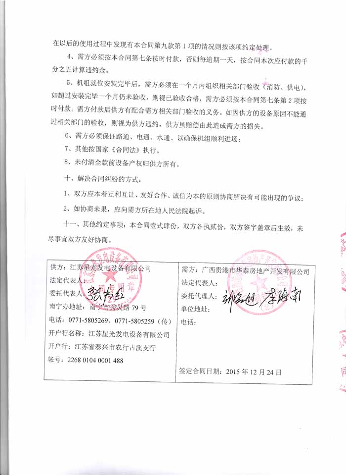 江苏星光动力集团 >> 新闻动态 >> 广西贵港市华泰房地产开发有限公司550KW上柴发电机组购销合同