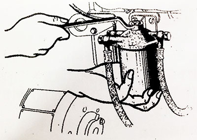发电机组燃油滤清器用两个M8-6H螺钉固定在机体或支架上,用户在使用中如发现供油不通畅,则有滤芯堵塞的可能。此时,应停车放掉燃油,可直接在柴油发电机组上松开拉杆螺母,卸下外壳,取出滤芯(如图2所示),然后将滤芯浸在汽油或柴油中用毛刷轻轻地洗掉污物(如图3所示),如果滤芯破裂或难以清洗,则必须换新,然后按图1所示装好,并注入清洁的燃油。