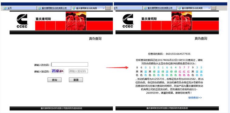 八、用户对市场上任何假冒重庆康明斯发动机的行为,均可在重庆康明斯网站上举报。官网地址:www.cummins-cq.com