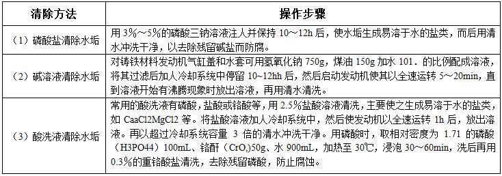 清除水垢的化学清除液应根据水垢成分与零件材料选用。