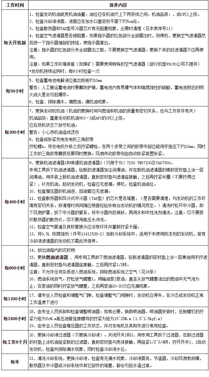 柴油发电机组维护保养内容表