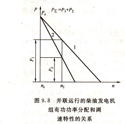 并联运行的柴油发电机组的有功功率分配取决于各机组的柴油机调速特性(图9.8)。