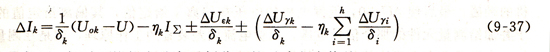 式(9-36)中的非线性电压偏差△Uγk豫和△Uγi应该看作代数量,即高于直线特性的偏差为正,低于直线特性的偏差为负。事实上△Uγi是随电流而变化的,而电流本身又是待求量,而且各个机组的△Uγ,值也有差别,因此用式(9-35)和式(9-36)作准确计算是困难的,只能作定性分析和大致估计非线性所引起的电流偏差范围。